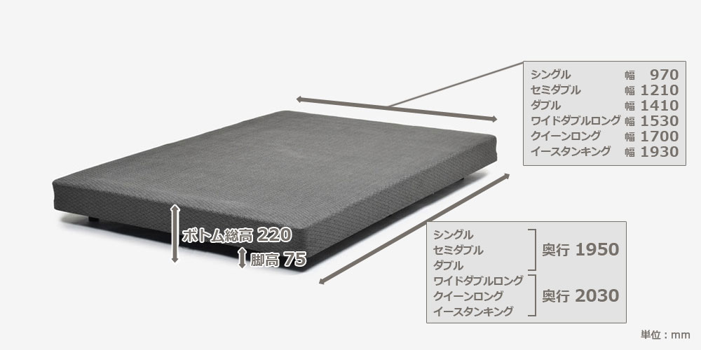 ※ボトムクッション単体ではご使用いただけません。必ずマットレスと組合わせてご使用ください。