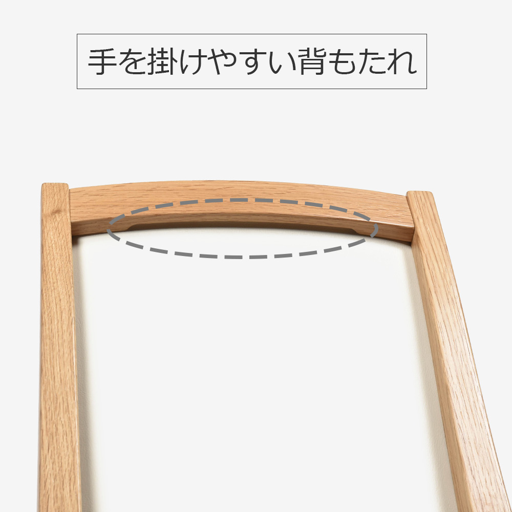 背もたれは手を掛けやすいデザインになっています。 椅子の出し入れがスムーズに行えます。