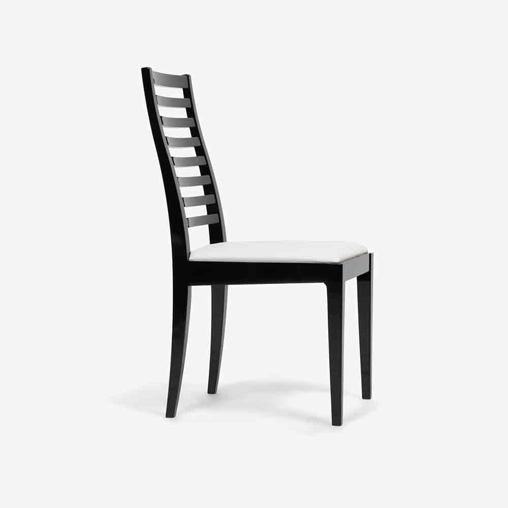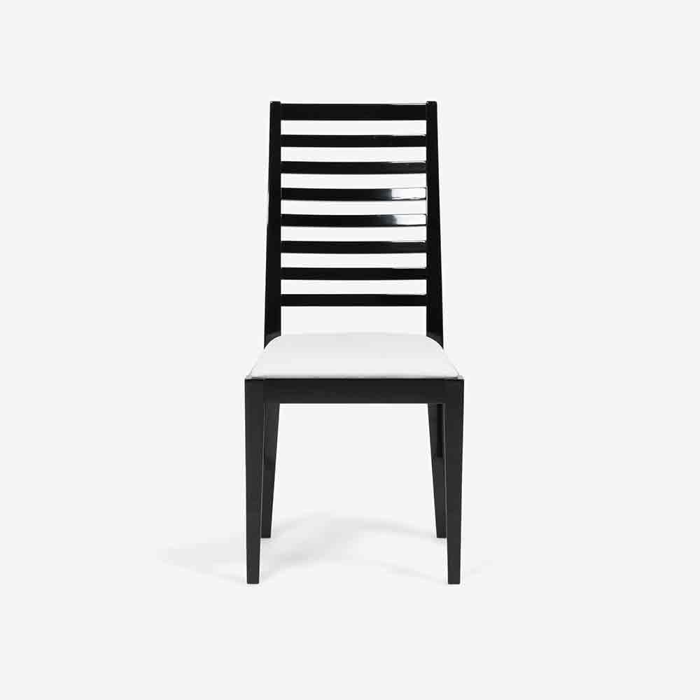 シンプルなデザインはどのようなお部屋にも合わせやすく、スッキリとした背もたれは軽やかな印象を与えてくれます。横格子の背もたれは椅子を引きやすく、実用的でもあります。
