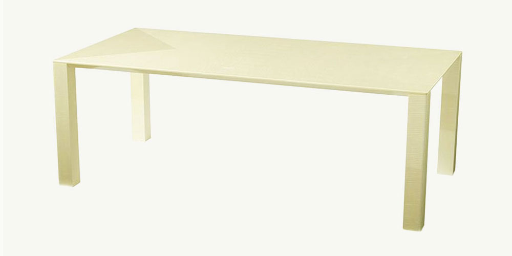 ホワイトシカモアの貴重なカーリー杢が美しいダイニングテーブル「マリーンNO.5」。 色が白く、まるで絹を思わせるような光沢があり、その中でも最も美しいと言われるカ−リ−杢を使用しています。カーリー杢はシカモア材の中でも非常に珍しい杢で又、メ−プル材に比べ生息本数自体が少なく1/50の割合でしか生息していないので、そういう点から言っても大変希少価値がある材といえます。 古くからバイオリンやギタ−などの高級な楽器の表面材などに使われており、特に有名なものとしてはストラディバリウスが挙げられます。 その名前の通り天然木とは思えない白さが特徴的なホワイトシカモア。塗装の白では出ない天然木の色ならではの優しい色合いと、独特なカーリー杢がその美しさを更に際立たせます。